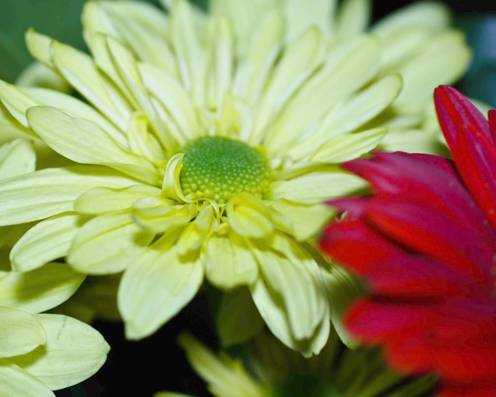 I'll be the first to admit that the picture needs help in the lighting department, but I love the way part of the photo is in focus and part not. And I love the little bits of pollen which cling to a couple of the petals.